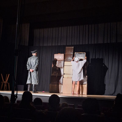 In der Aula fand eine Aufführung des Theaterspiels Witten für die Schülerinnen und Schüler der Jahrgangsstufe 10 statt. "ÜBERdasLEBEN oder meine Geburtstage mit dem Führer" zeigte auf eindrucksvolle Weise, wie junge Menschen während der Zeit des Nationalsozialismus von der nationalsozialistischen Ideologie vereinnahmt wurden und wie schwierig es war, seinen Werten und Grundsätzen treu zu bleiben.